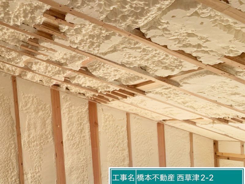 壁や屋根の断熱材が、図面通り適切な厚さで吹き付けられているか確認します。