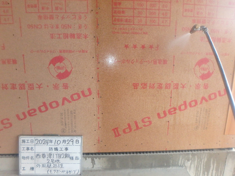 住宅の土台、柱をシロアリ被害から守るために薬剤を使って予防します。