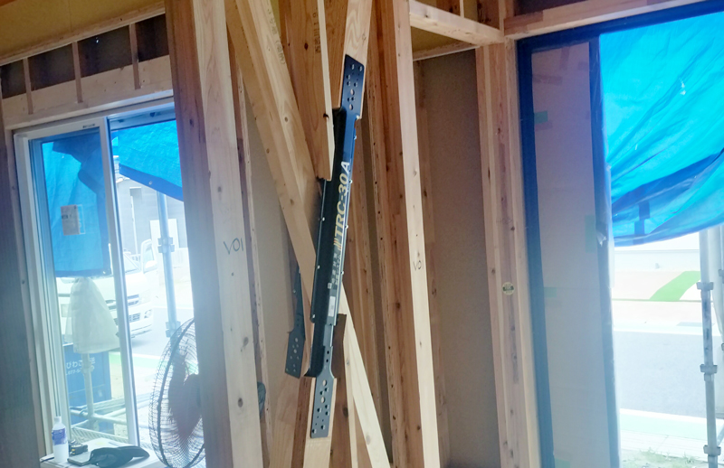 図面通りの耐力壁、金物、構造体(梁、胴差等)が使用されているか確認します。