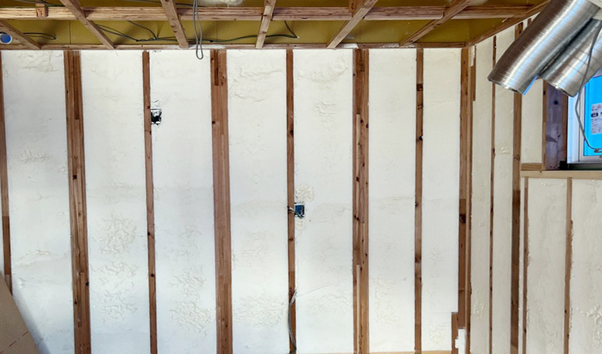 壁や屋根の断熱材が、図面通り適切な厚さで吹き付けられているか確認します。
