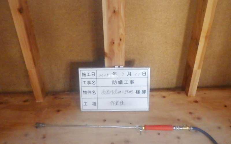 住宅の土台、柱をシロアリ被害から守るために薬剤を使って予防します。
